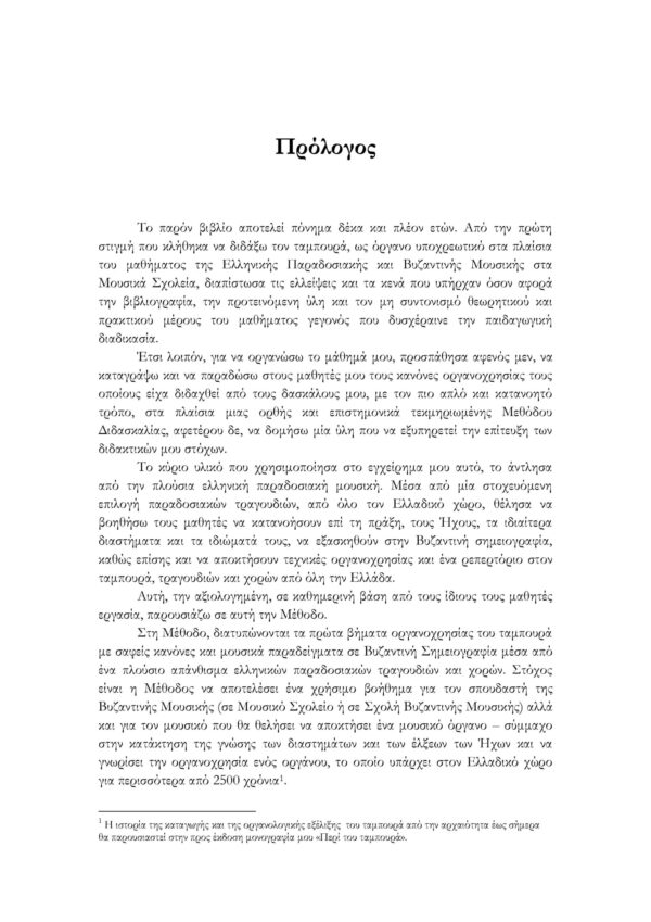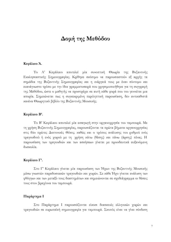 Η Μέθοδος απευθύνεται σε σπουδαστές της Βυζαντινής Εκκλησιαστικής Μουσικής Τέχνης και της Ελληνικής Παραδοσιακής Μουσικής (σε Μουσικό Σχολείο ή σε Σχολή Βυζαντινής Μουσικής) που θέλουν να γνωρίσουν την οργανοχρησία του ταμπουρά. Ξεκινάει από τα πρώτα βήματα και με μία στοχευμένη επιλογή τραγουδιών παρουσιάζει τις βασικές τεχνικές (π.χ. Θέσεις Οργανοχρησίας, δαχτυλισμοί, πενιές, αποτσιατούρες, κουρδίσματα κ.ά.) που χρησιμοποιούνται στην οργανοχρησία του ταμπουρά. Στόχος της μεθόδου είναι ο μαθητής, πέρα από το ρεπερτόριο που θα αναπτύξει, να αποκτήσει και μεταγνωστικές δεξιότητες. Δηλαδή, να αποκτήσει στέρεες βάσεις οργανοχρησίας για να μπορέσει στη συνέχεια να συνεχίσει απρόσκοπτα το μουσικό ταξίδι του με συνοδοιπόρο τον ταμπουρά του.