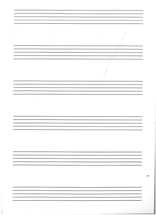Ένα τετράδιο μουσικής με γραμμές για σημειώσεις στη μια σελίδα και έξι πεντάγραμμα στην άλλη σελίδα με μεγάλο κενό ανάμεσα τους.