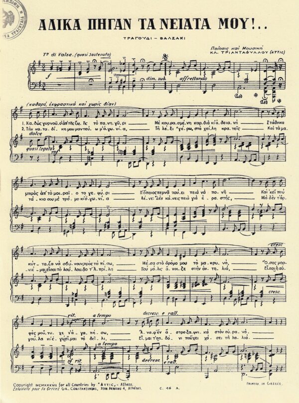 Παρτιτούρα για φωνή και πιάνο, από την μεγάλη συλλεκτική συλλογή με παρτιτούρες ρετρό από τις πρωτότυπες συνθέσεις του Attic!