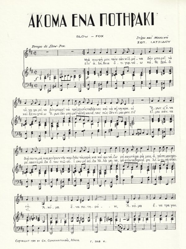 Παρτιτούρα για φωνή και πιάνο, από την μεγάλη συλλεκτική συλλογή με παρτιτούρες ρετρό από τις πρωτότυπες συνθέσεις της εποχής!