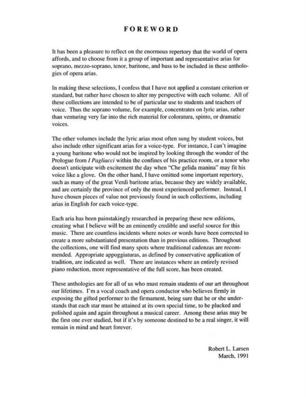 – 28 επιλεγμένες άριες Περιλαμβάνει ιστορικά σημειώματα, συνόψεις πλοκής και μεταφράσεις για μελέτη. Επιμέλεια: Robert Larsen.