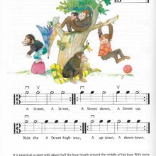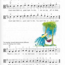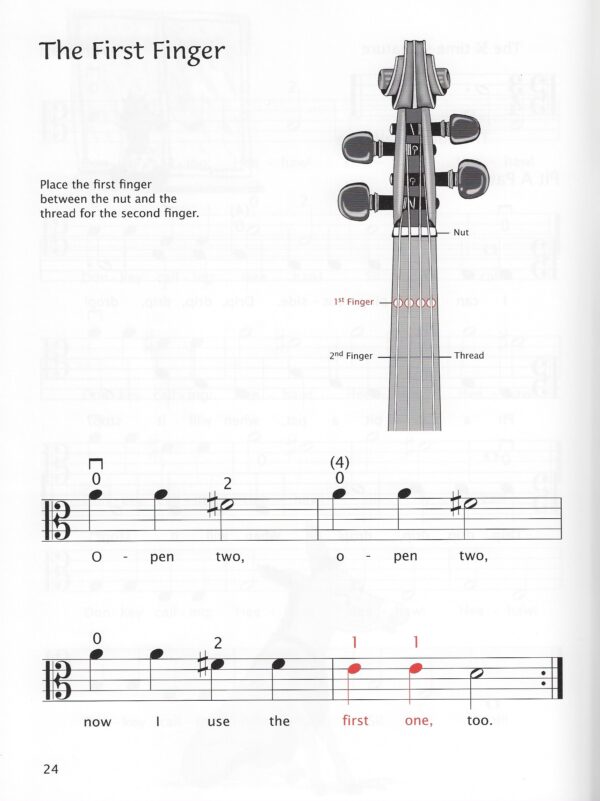 Ο πρώτος τόμος αποτελείται από 15 μαθήματα με εύκολες μελωδίες και γνωστά παιδικά τραγούδια. Επίσης, περιλαμβάνει κάρτες flash για την εκμάθηση της πρώτης θέσης και τις τοποθετήσεις των δακτύλων.