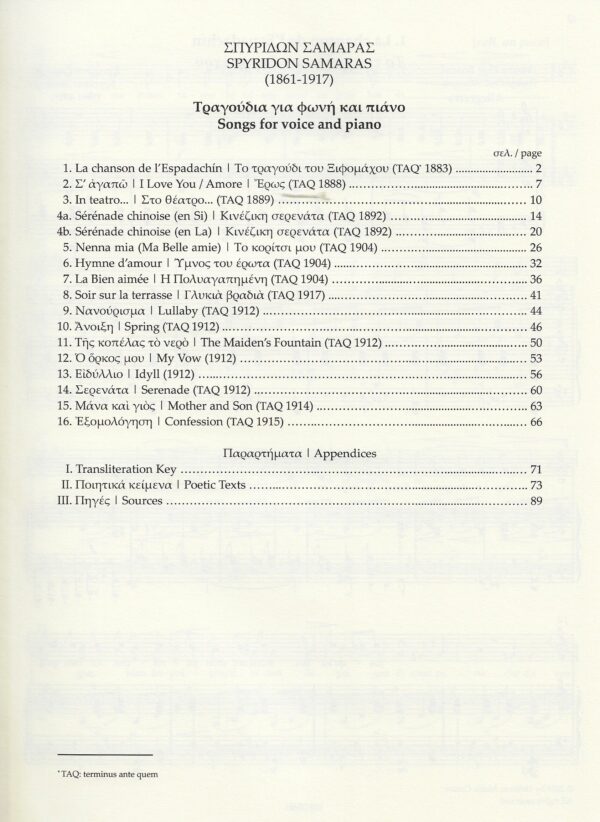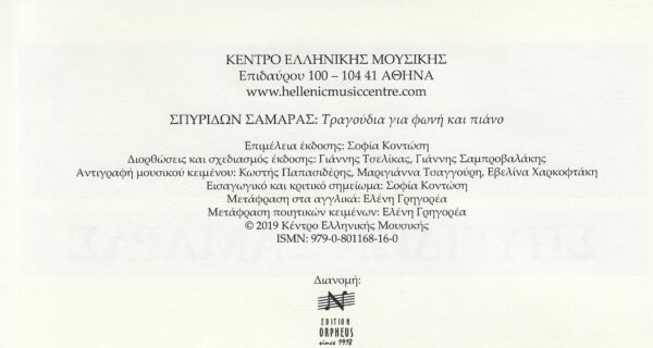 Σπυρίδων Σαμάρας-Songs – for Voice and Piano